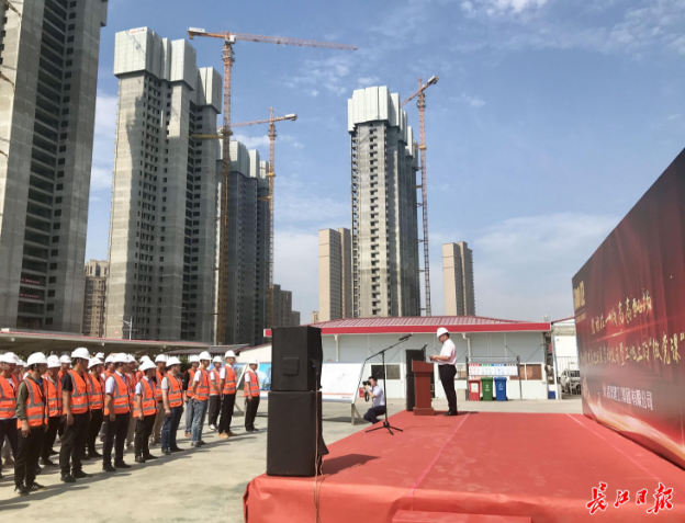 6月8日上午,位于經(jīng)開大道旁的車都?春臺里項目工地80余名一線建設者在辦公區(qū)上了一堂“微黨課”。即日起,黨史教育巡回展將在武漢建工集團市內(nèi)12個重點工地巡回展出,持續(xù)至10月。